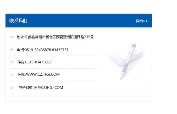 地址:常州市新北區友邦商務大廈1幢16、17層  電話:0519-85101652  傳真:0519-85112595  郵編:213022  網址:www.cz-jiayue_cn.meilinglife.com  郵箱:xiajifengaa@163.com